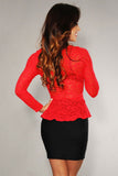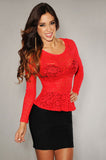Ivory Sheer Lace Peplum Top Red