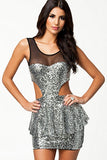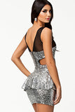 Silver Clinquant Mesh Cutout Peplum Dress