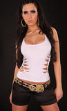White Mesh Stitching Crop Club Top